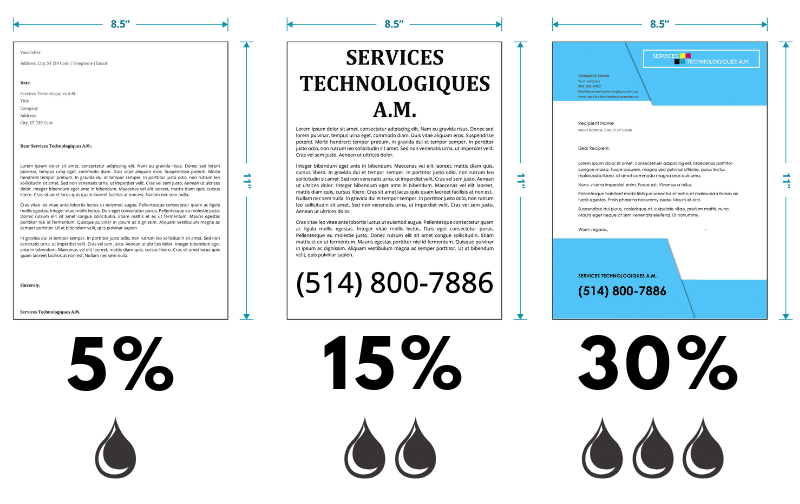 La première fonctionne avec des cartouches à 25€ pour 200 copies et la seconde à réservoirs d’une capacité de 2500 copies. La simulation est basée sur une consommation de 100 pages par mois, pour un taux de recouvrement de 5% (cf Couverture de page) .